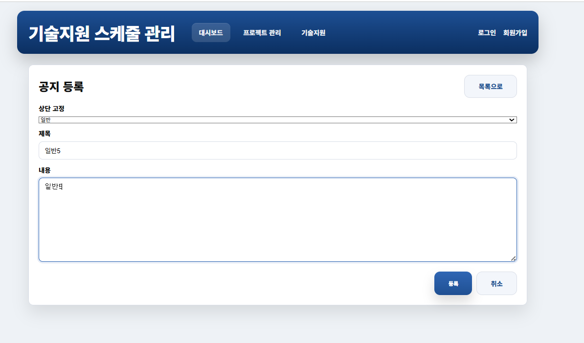 -> 공지등록 화면
